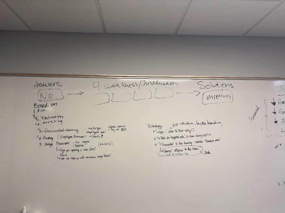 Before receiving the case prompt, we were given a crash course on how to approach any business problem. The facilitators emphasized the importance of identifying the core problem, conducting structured analysis, selecting the right decision frameworks, engaging in meaningful team discussion, and, of course, delivering a clear and compelling presentation. We were also challenged to reflect on our own experiences — when was the last time we identified a problem and worked collaboratively toward a solution? It was a simple question, but it grounded the exercise in real-world decision-making. A key part of this prep session focused on cognitive biases. How do we ensure that overconfidence, confirmation bias, anchoring, and the status quo bias don’t quietly shape our conclusions? This reminder struck me — strategic decision-making isn’t just about frameworks; it’s about self-awareness and actively checking the assumptions that can cloud judgment.