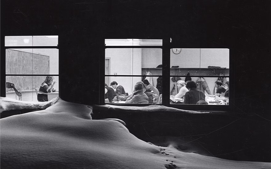 A snapshot of the University of Wisconsin School of Business in the 1980’s, where learning continues through every season, from the quiet snowfall outside to the focused minds within. While the classroom has evolved, the dedication to education remains timeless.